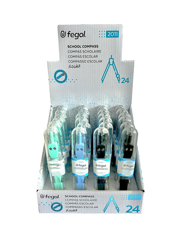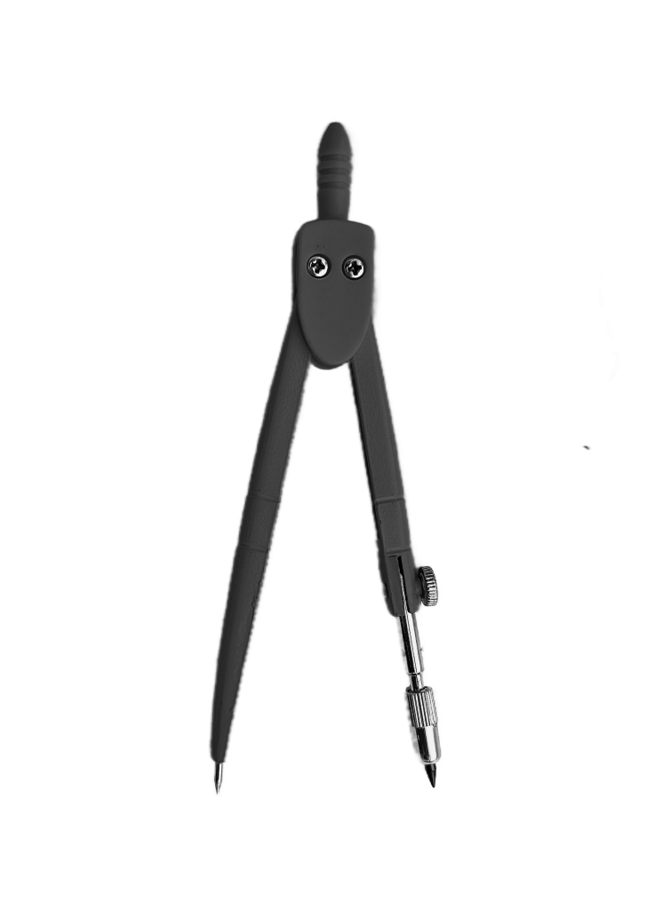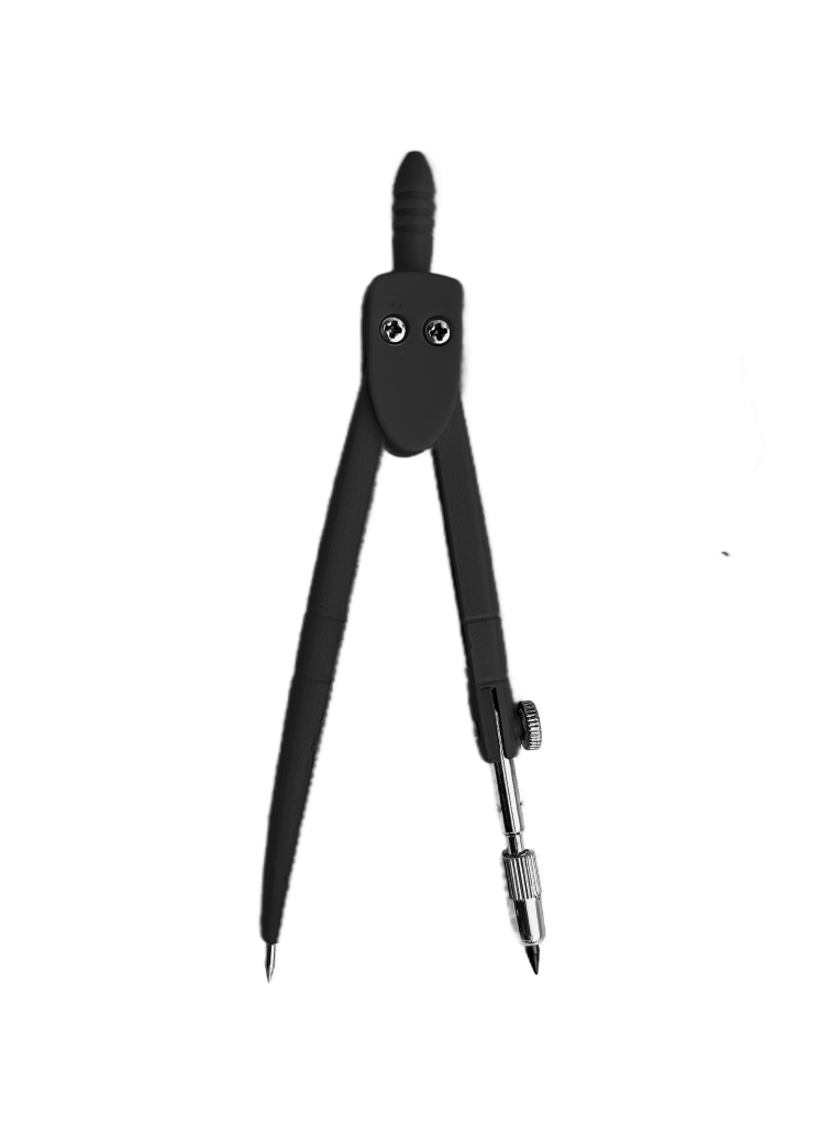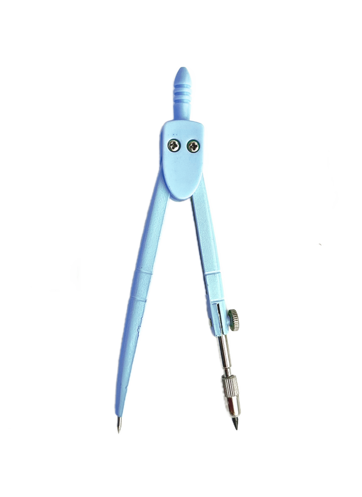 Compas à piéces interchangeables en métal nickelé, branche à articulation. Creux de prehension confortable. Bôite en plastique trés resistant.