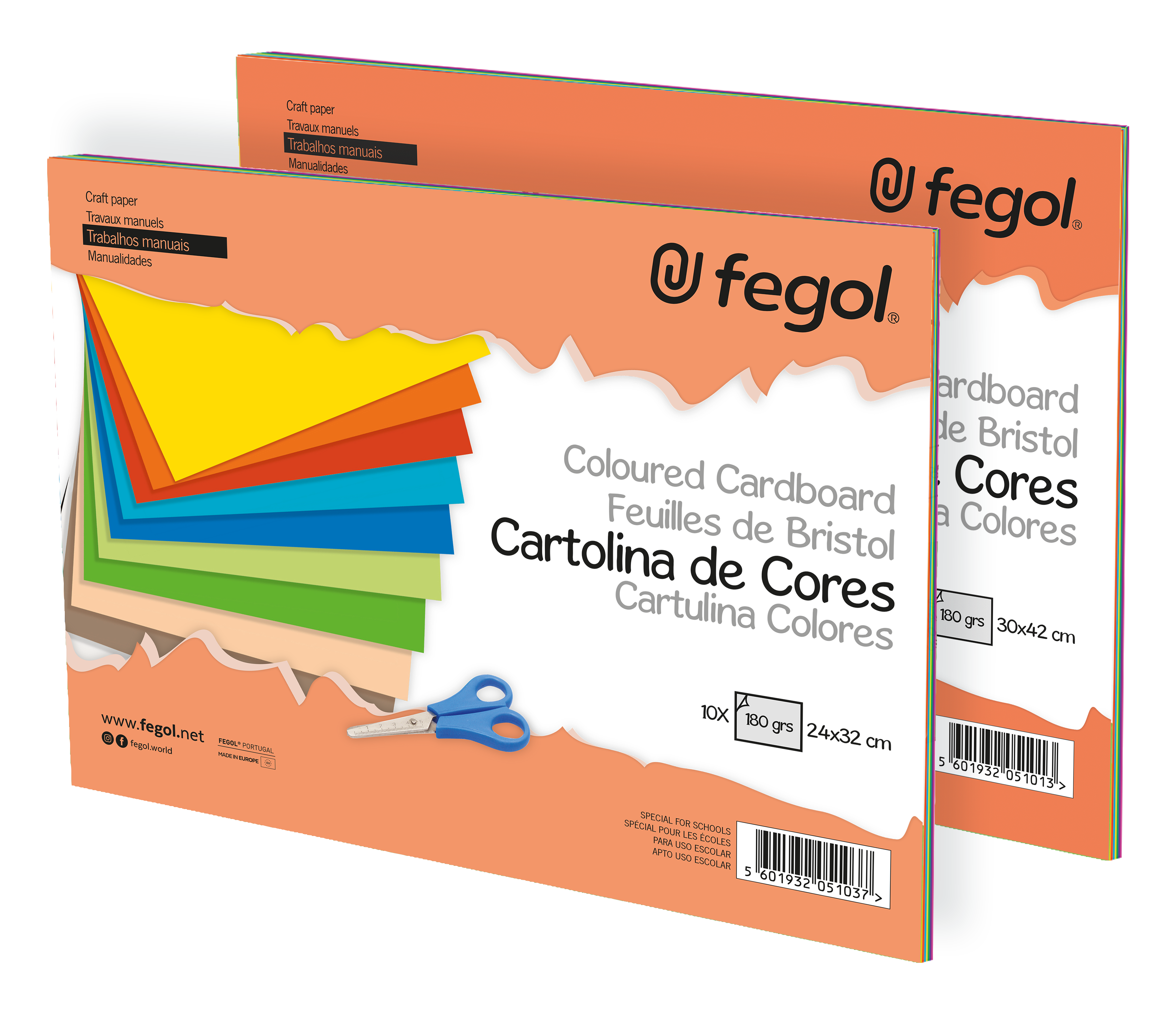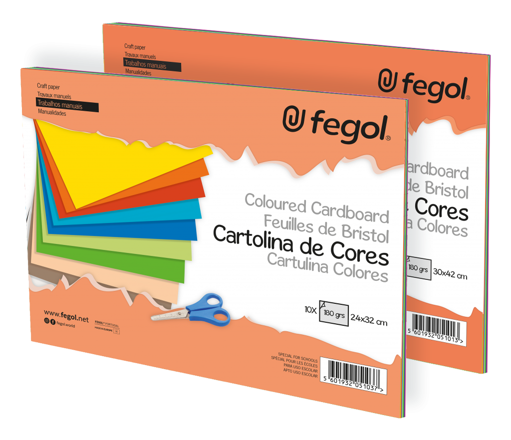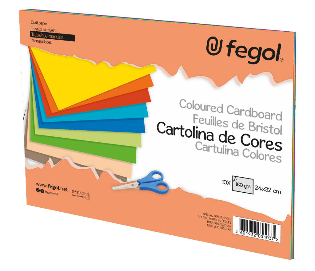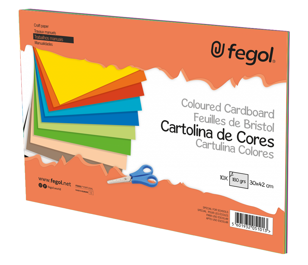 Bloco com 10 folhas de cartolina colorida de 180g/m2 no formatos A3 e A4. Cores sortidas.
